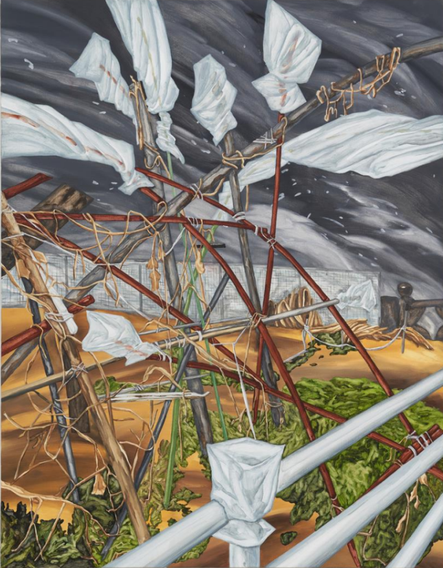 안주은(b.1999)은 사물의 흔적과 구조물의 생존성을 탐구하는 지극히 회화적인 회화를 선보이는 작가다. 챔버1965, WWW SPACE, 갤러리조선 등의 그룹전에 참여한 바 있으며, 2025년 오에이오에이에서 개최한 첫 개인전에서는 험난한 환경 속 사물에 투영된 인간의 의지를 그려내었다.